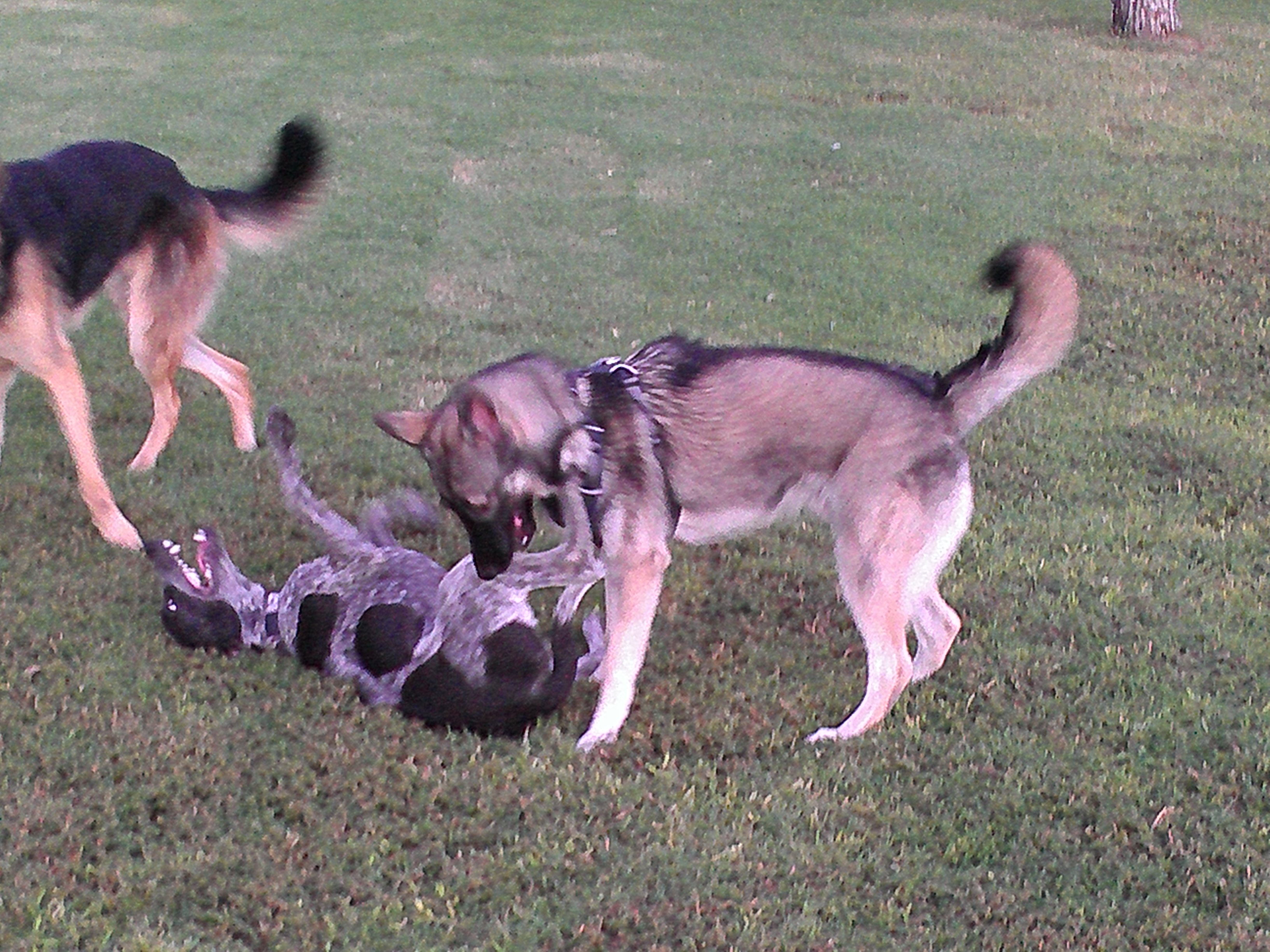 and Kiko were running and chasing each other. It was hot and muggy. Thought that would 'tire' him out. Nope. He laid by the